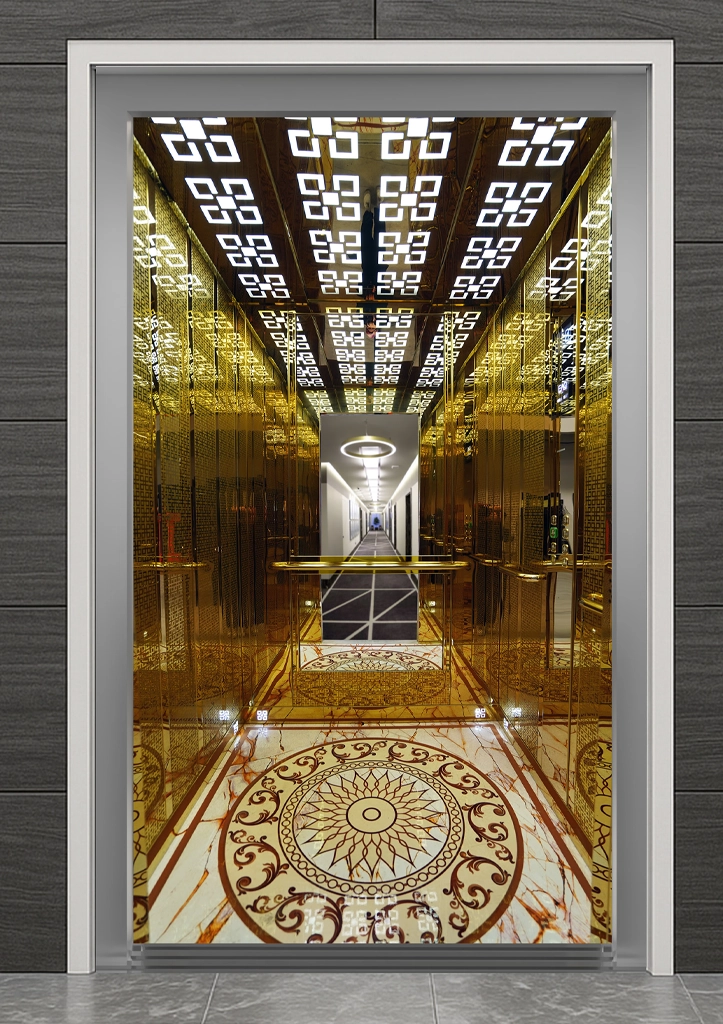 السقف: مرآة فولاذية ذهبية / قطع بالليزر